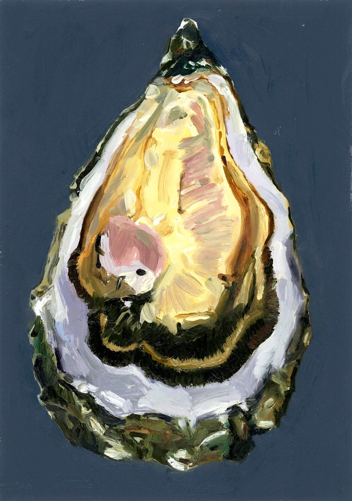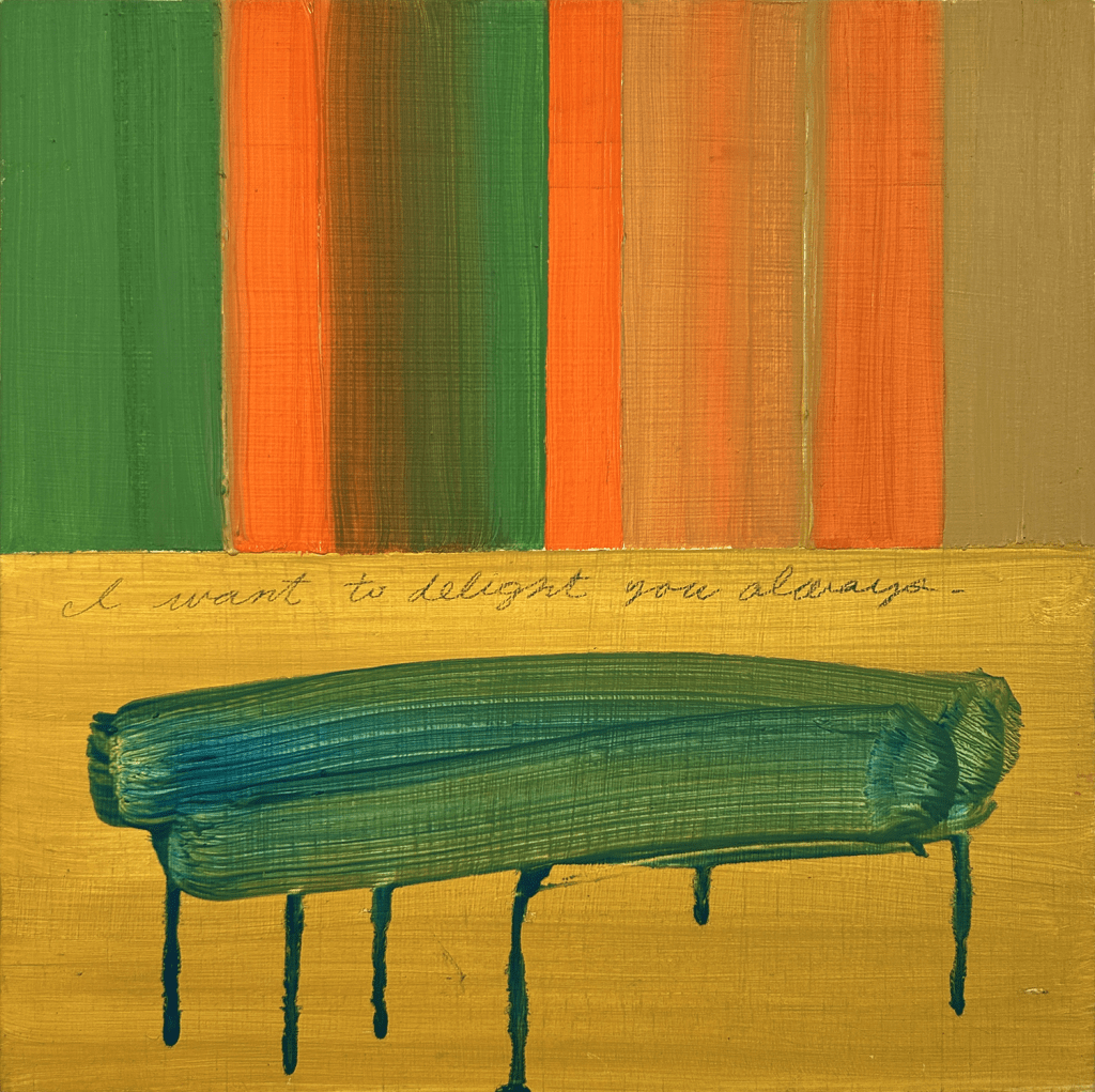 untitled (gift), 2025 oil on panel 12 x 12 inchesrustling, 2025 oil on paper, homasote 17 x 11 inchesrising, 2025 oil on paper, homasote 17 x 11 inchesheroning, 2024. oil and collage on panel 10 x 10 inchesuntitled (larva), 2024 oil on panel 10 x 8 inchesi want to delight you always, 2024. oil on panel 12 x 12 inchesOyster, 2024 oil on paper 10 x 7 inches